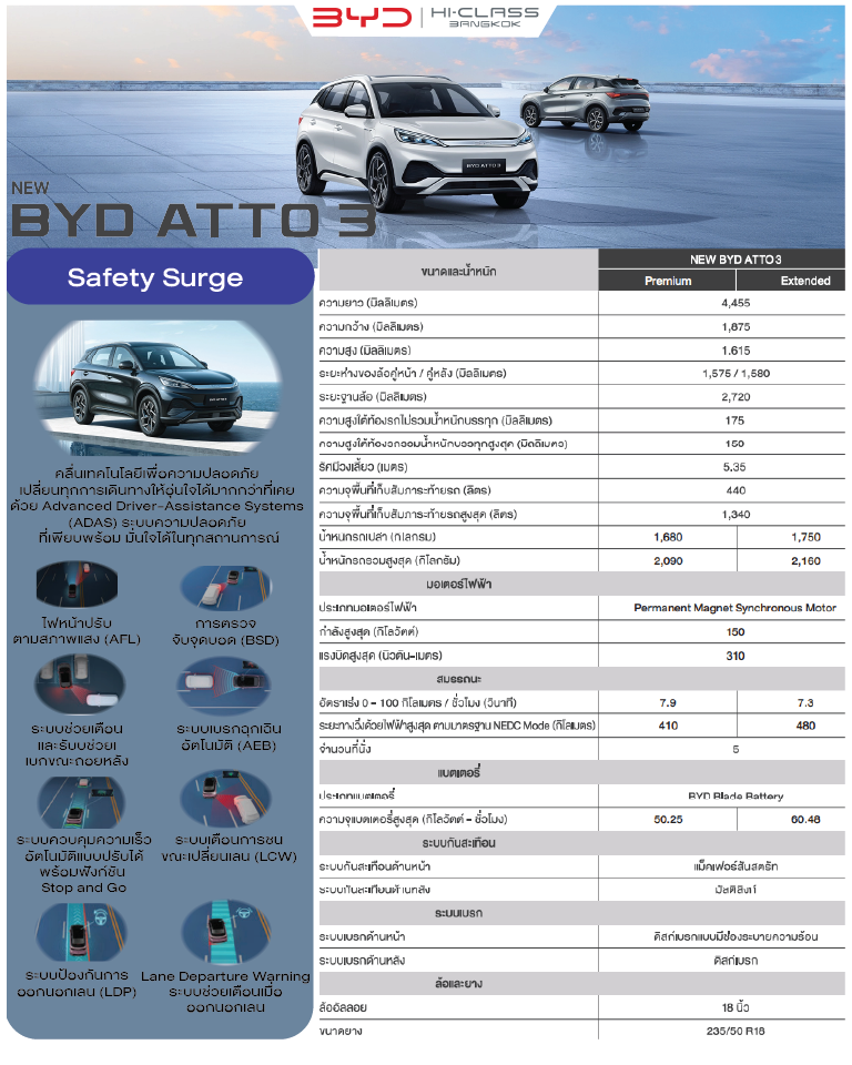 🤍 New BYD ATTO 3 รุ่น Extended ราคาพิเศษ 799,900 บาท*