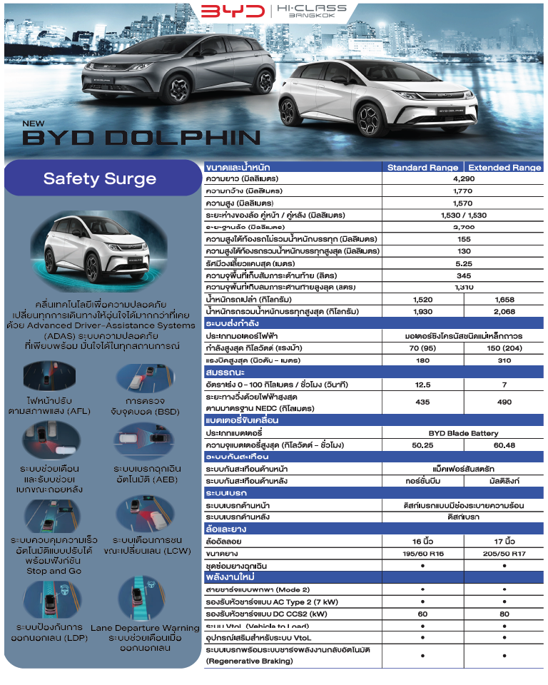 เทียบสเปค รุ่นย่อย DOLPHIN