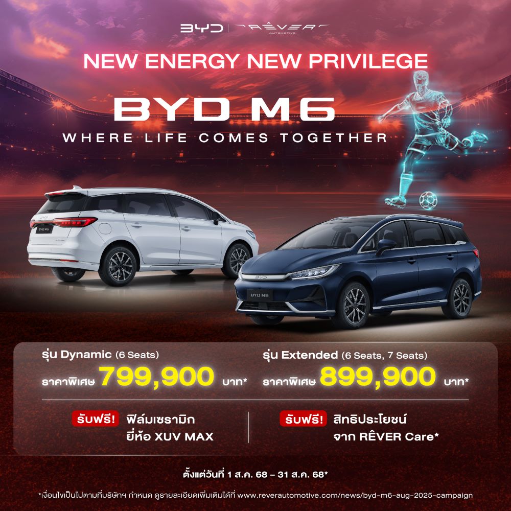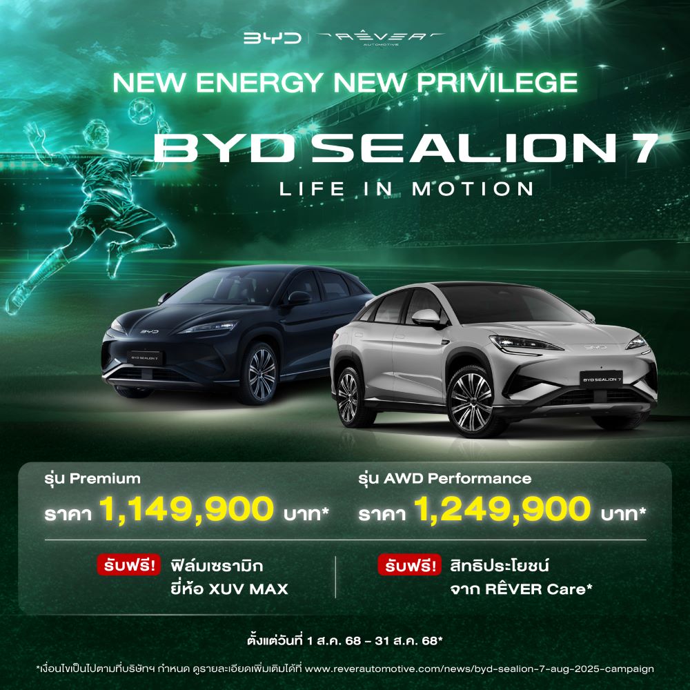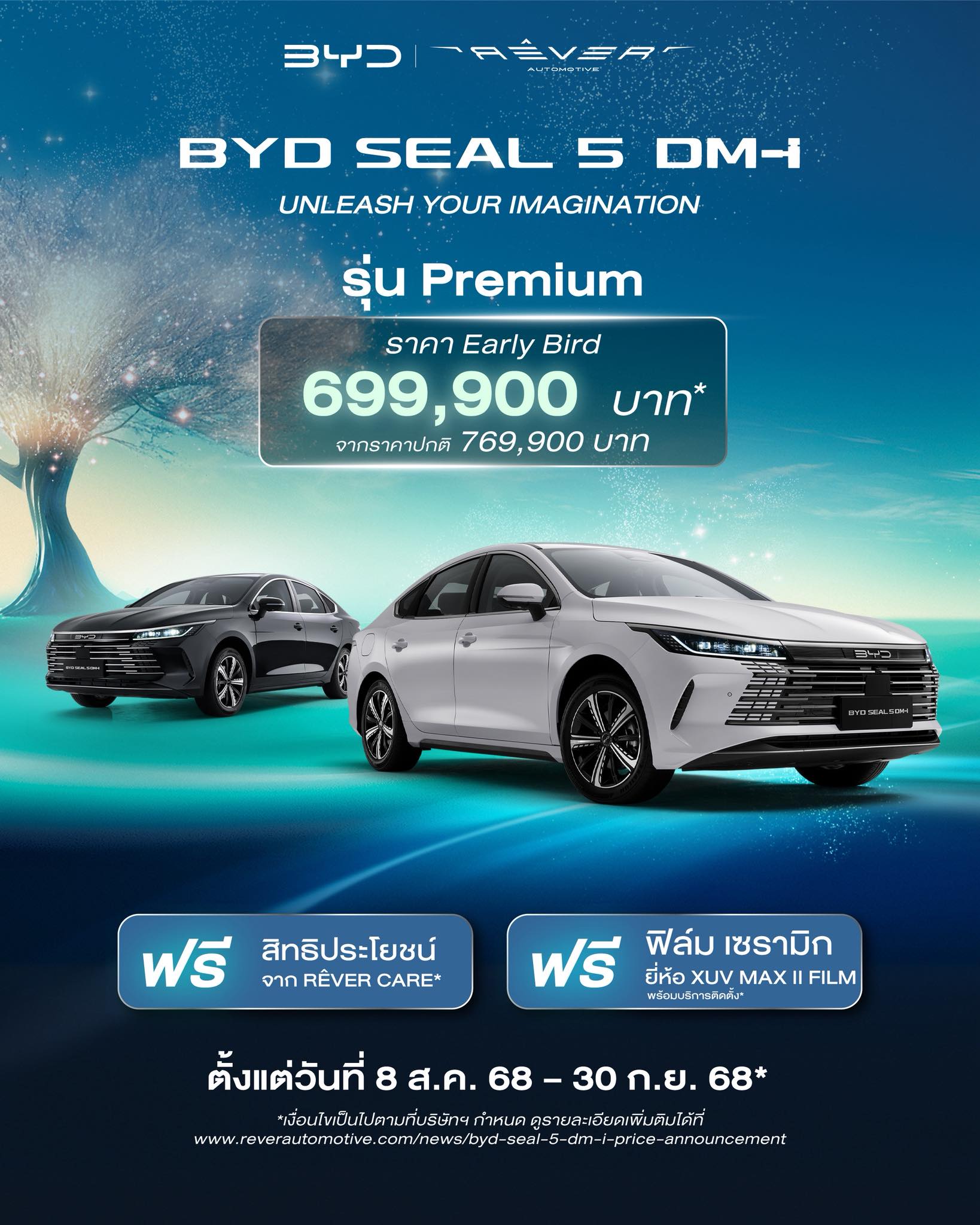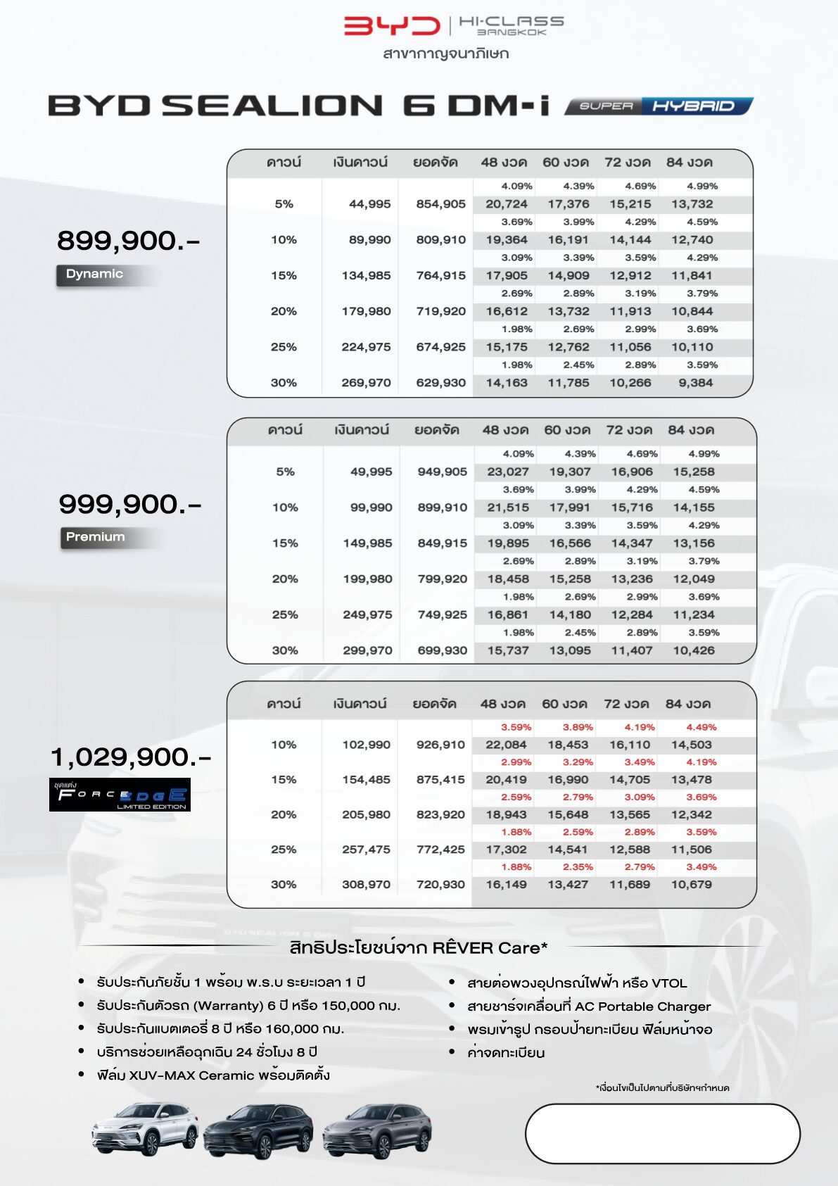**เงื่อนไขเป็นไปตามที่บริษัทฯ กําหนด สำหรับ BYD SEALION 6 DM-i รุ่น Premium (RÊVER ForceEdge Edition) ดูรายละเอียดเพิ่มเติมได้ที่ https://www.reverautomotive.com/news/byd-sealion-6-dm-i-force-edge-edition-aug-2025-campaign