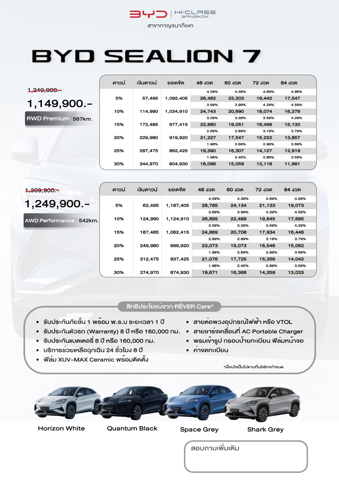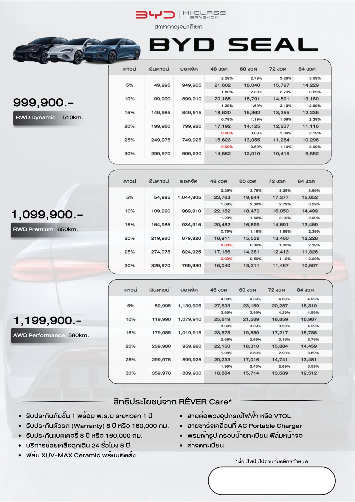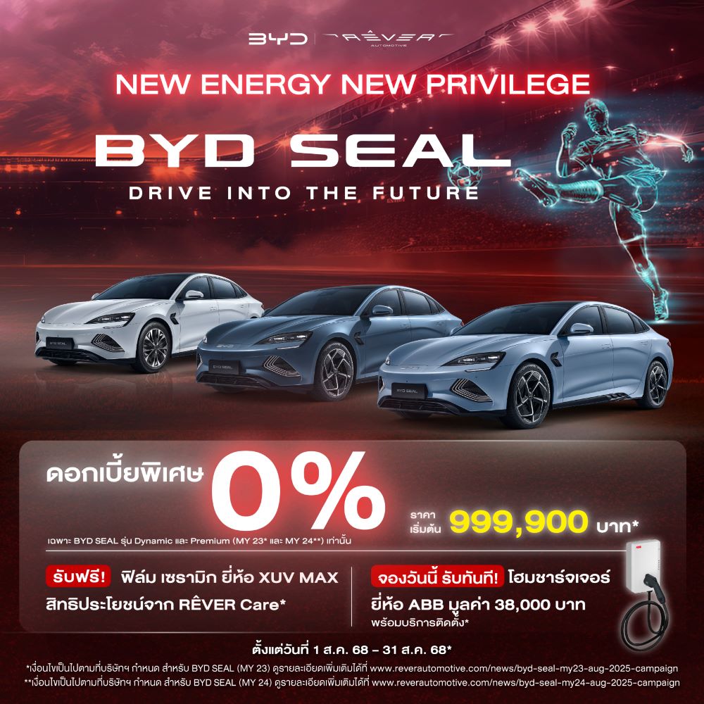 **เงื่อนไขเป็นไปตามที่บริษัทฯ กําหนด สำหรับ BYD SEAL (MY 24) ดูรายละเอียดเพิ่มเติมได้ที่ https://www.reverautomotive.com/news/byd-seal-my24-aug-2025-campaign