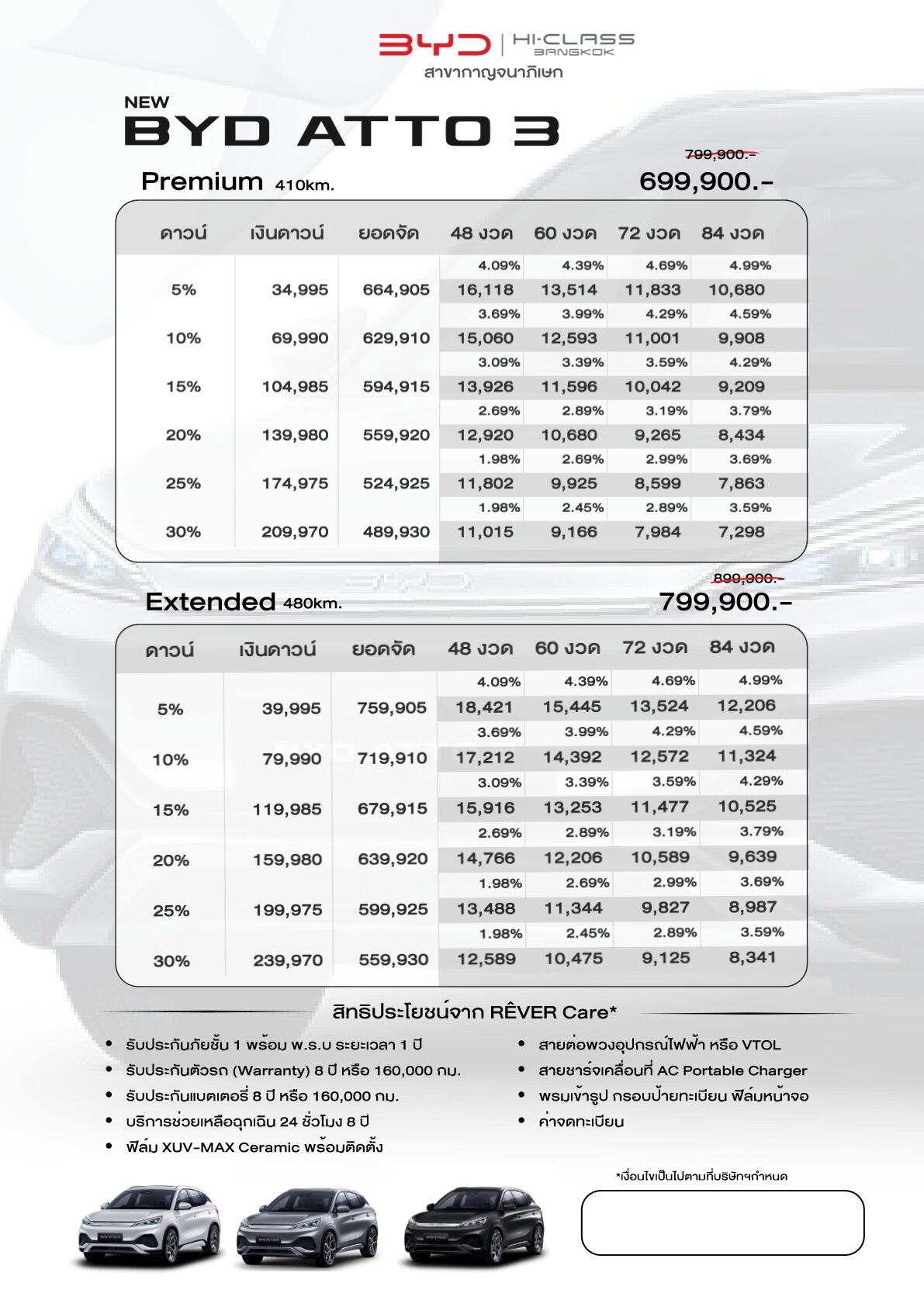 🤍 New BYD ATTO 3 รุ่น Premium ราคาพิเศษ 699,900 บาท จากราคาปกติ 799,900 บาท