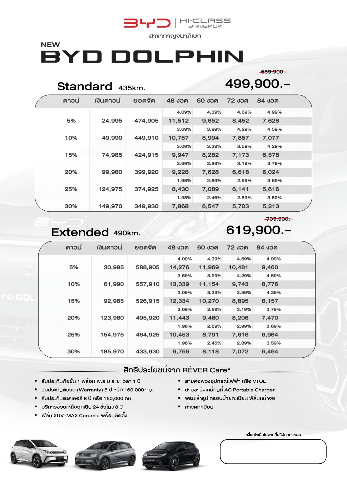 ราคาพิเศษ 499,900 บาท* New BYD DOLPHIN รุ่น Extended Range