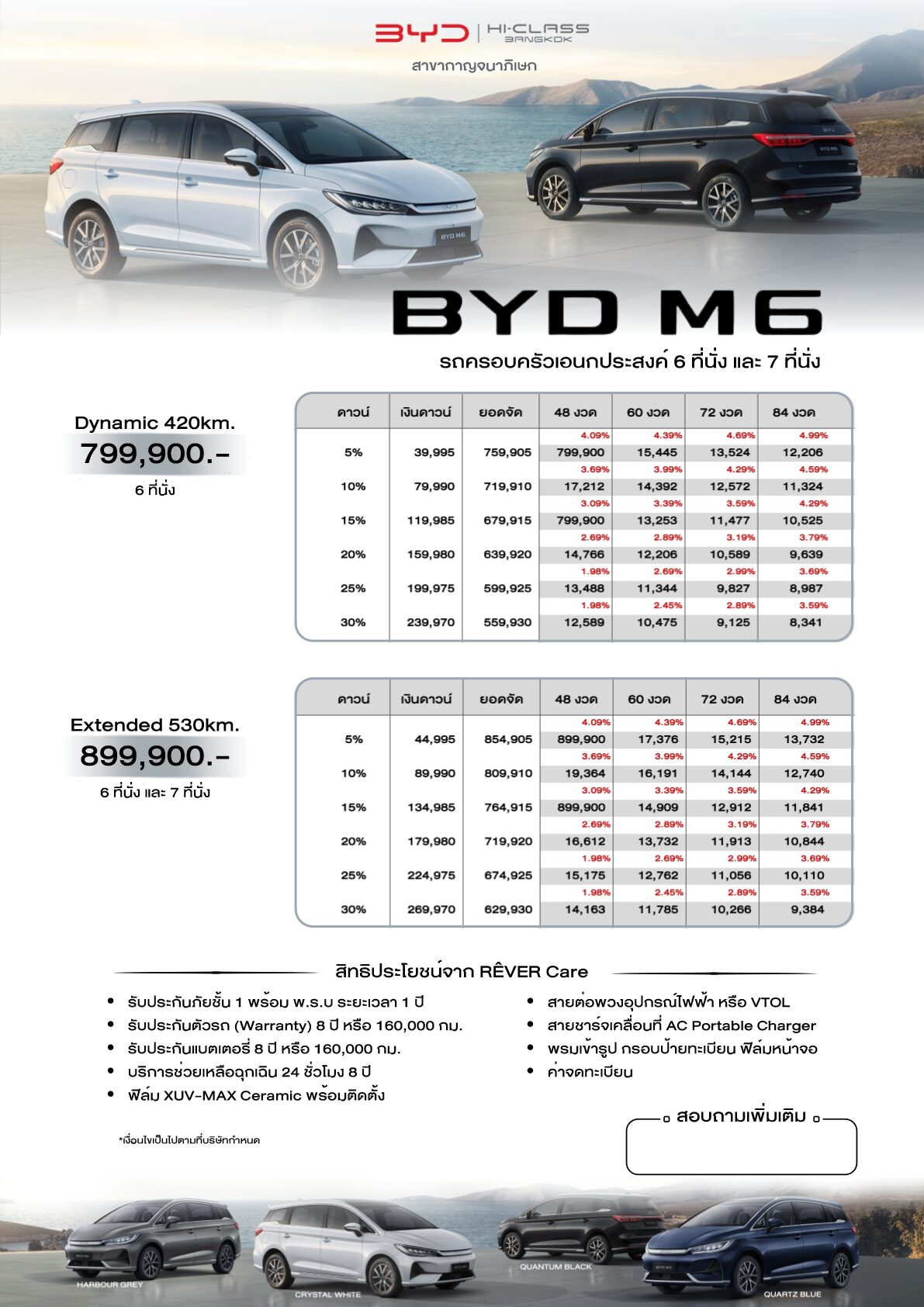 🤍 BYD M6 รุ่น Extended (6-seat, 7-seat) ราคาพิเศษ 899,900 บาท*